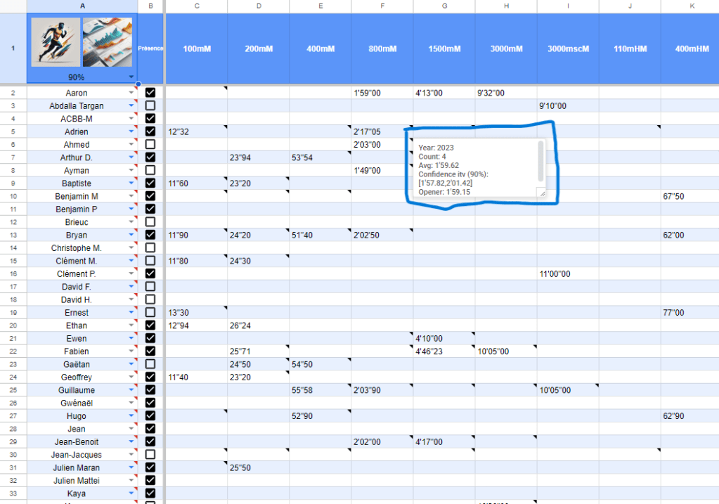 Sprint offre un outil d’optimisation puissant permettant de maximiser la somme des points de votre club d’athlétisme aux interclubs. Renseignez les prédictions de performance, utilisez le panneau de visualisation et l’outil de recommandation, cliquez, optimisez, gagnez. Disponible dès maintenant sur Google Workspace Marketplace.